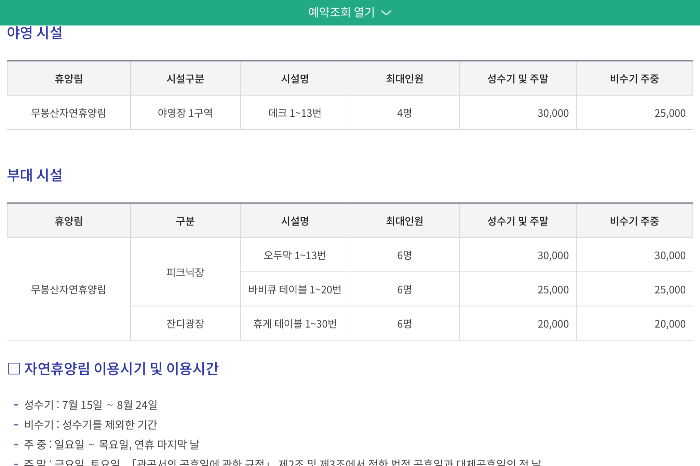 무봉산 자연 휴양림예약 가이드