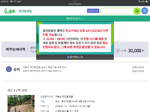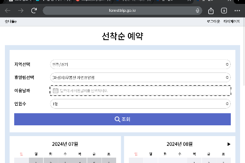 무봉산 자연 휴양림 예약은 숲나들e 홈페이지를 통해 가능합니다.