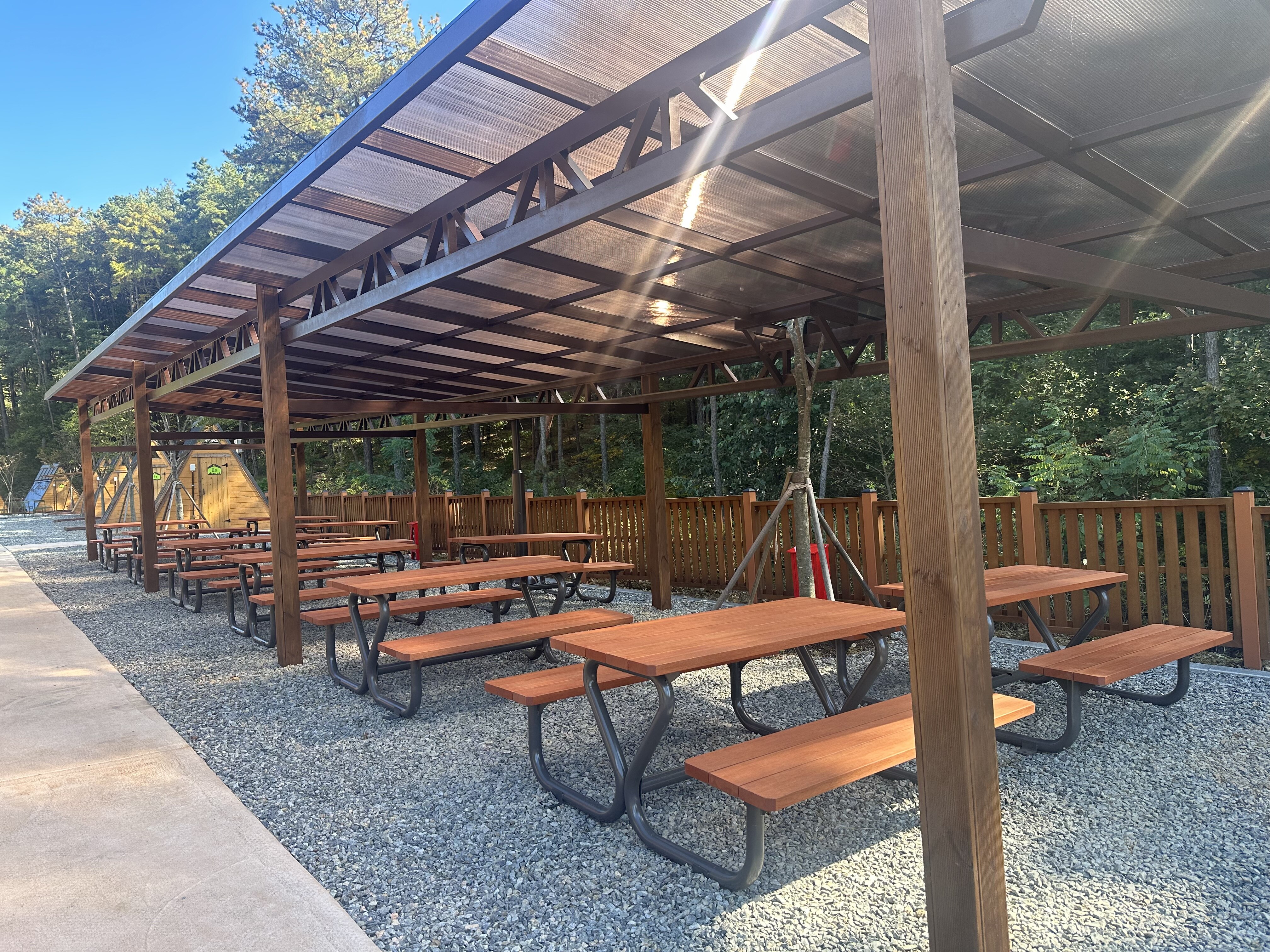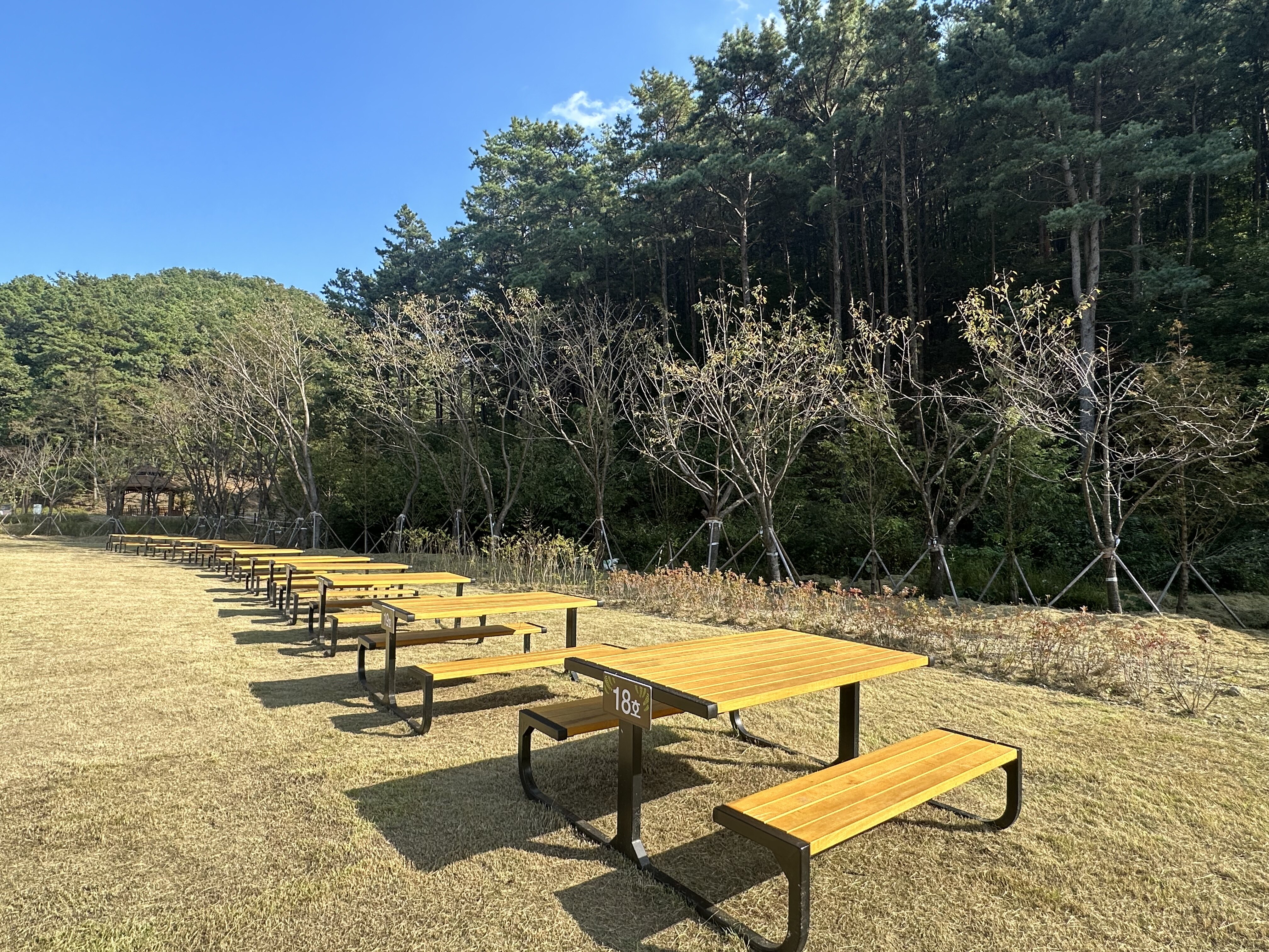 - 휴게 테이블: 자연 속에서 편안히 쉴 수 있는 휴게 공간입니다.