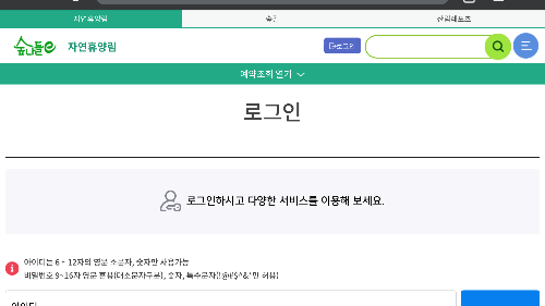 1. 회원 가입 및 로그인: 숲나들e 홈페이지에서 회원 가입 후 로그인합니다.