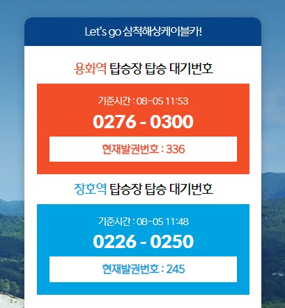삼척 해상 케이블카는 케이블카 탑승은 기상에 따라 영향을 받을 수 있으므로 사전예매가 불가합니다.